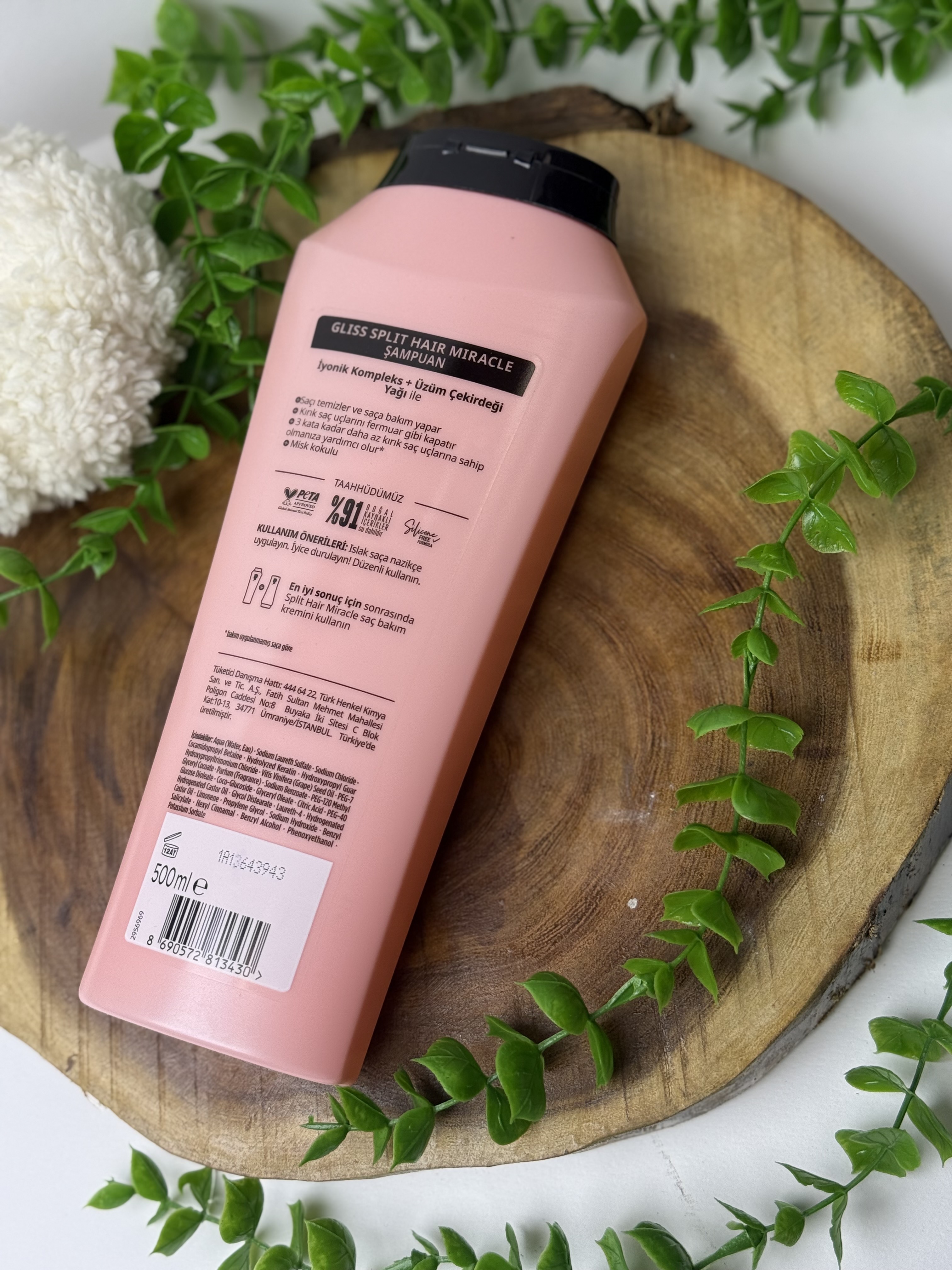 شامپو گلیس صورتی مناسب موهای خشک و دو شاخه با روغن دانه انگور 500ml