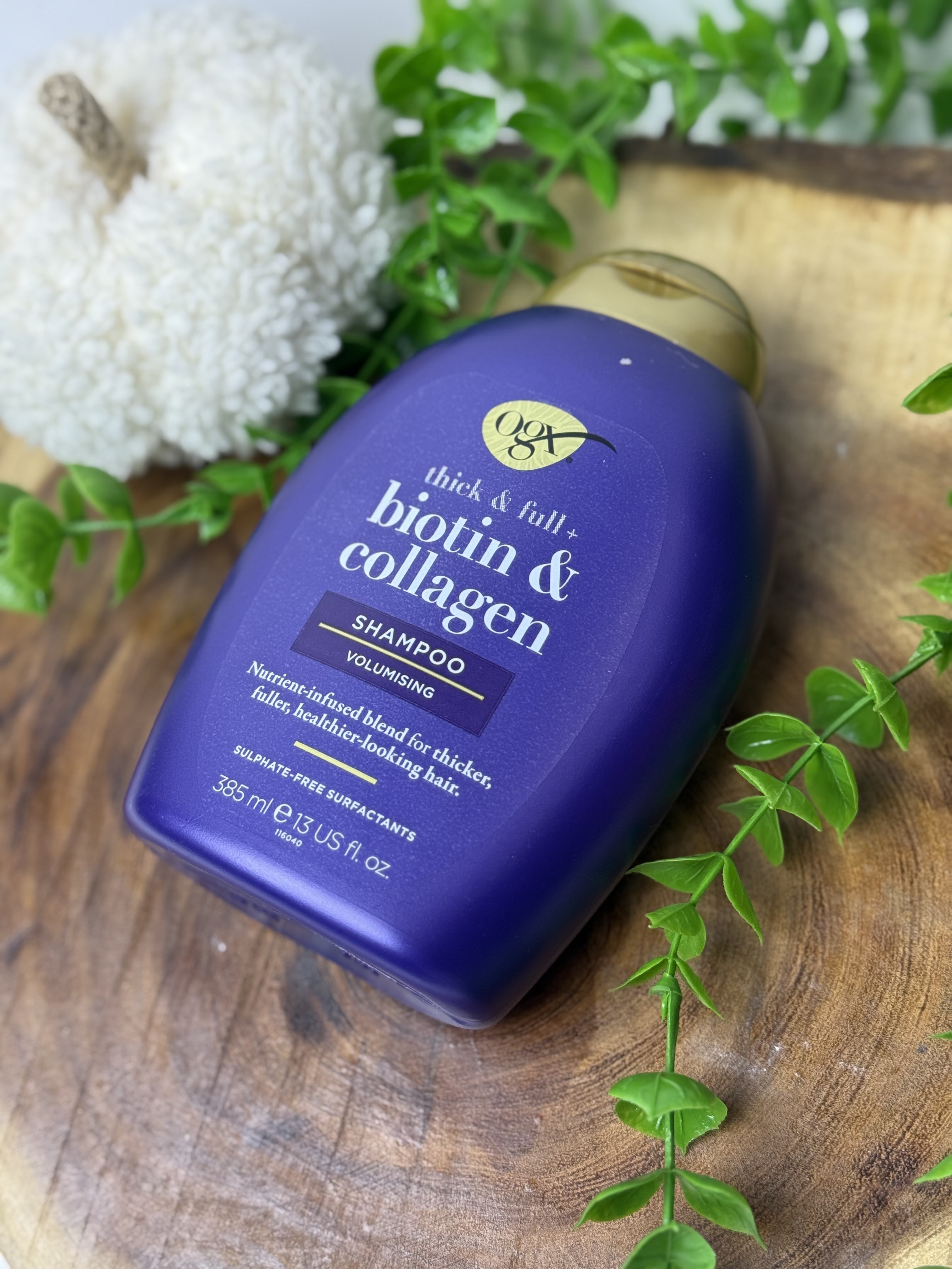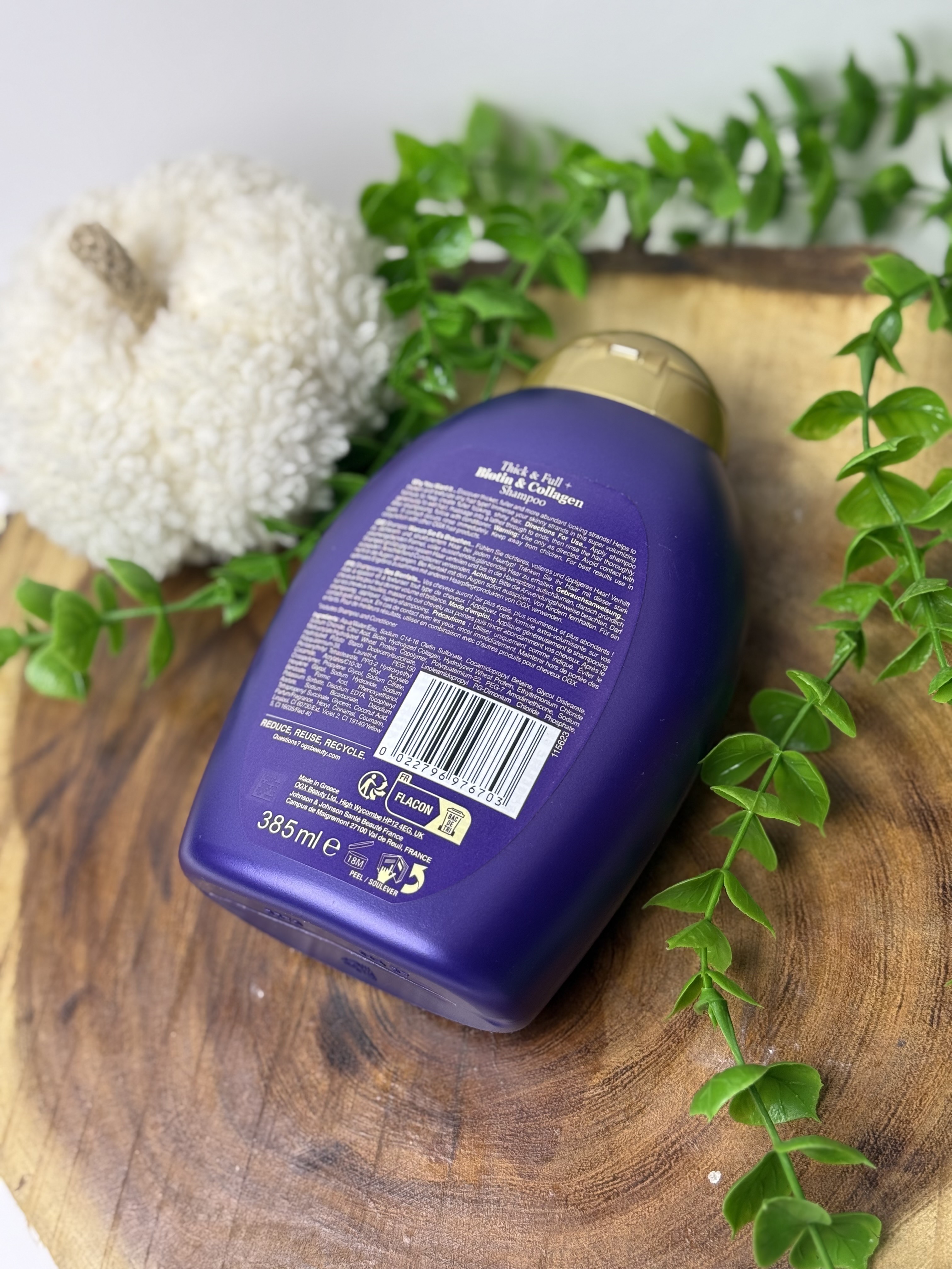شامپو OGX ضد ریزش و ضخیمکننده بیوتین و کلاژن 385 میلیلیتر